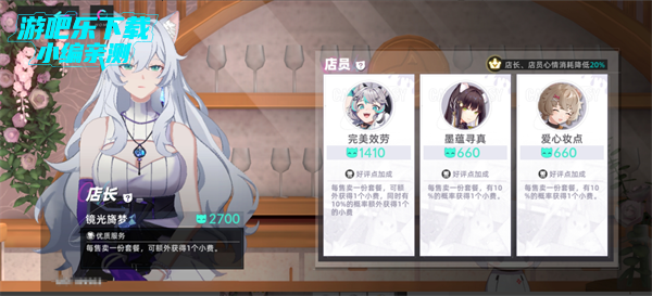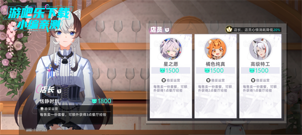 餐厅工作人员可以影响小费经验和新海币的获取,不同的队伍侧重不同,一般推荐小费队,因为小费的需求比较多,升时装的光之花,钓鱼的渔网,突破的粒子都可以买,不建议买绪晶,想快速升级也可以选经验队。另外,好感等级会影响角色的体力,有个小技巧,在人物耗光体力后提升好感等级可以回满体力。