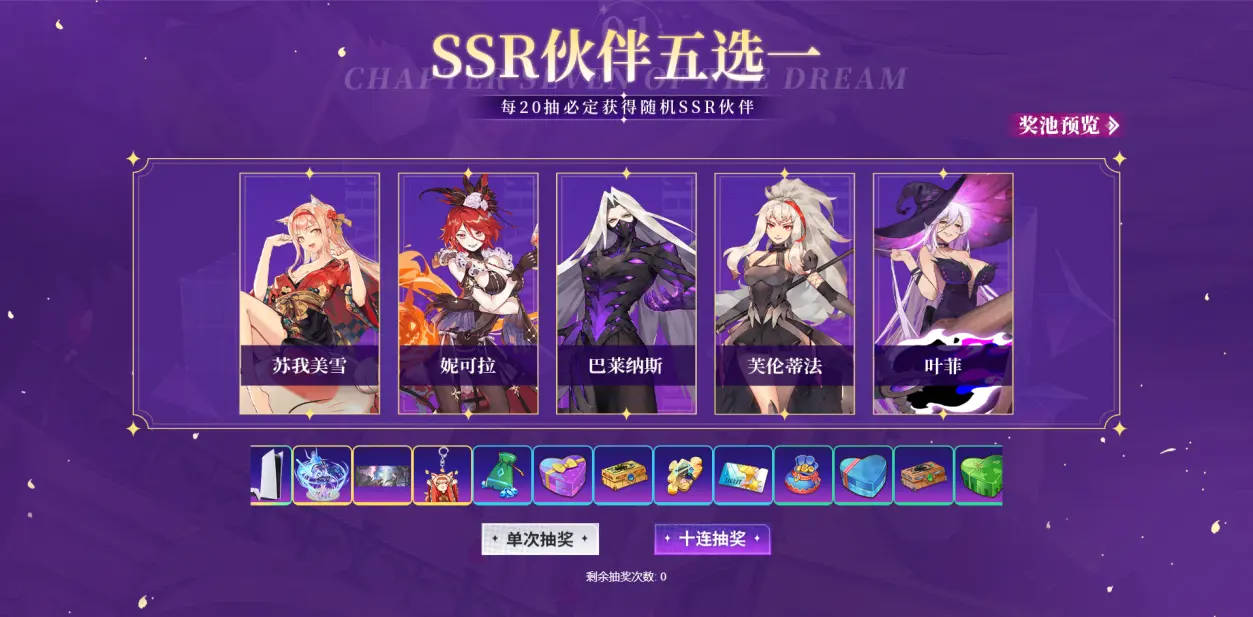 梦的第七章预抽卡活动SSR伙伴5选1攻略