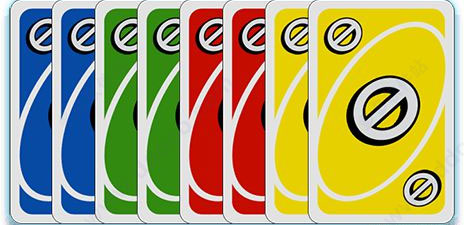 UNO牌由108张卡牌构成,包括76张数字牌、24张功能牌和8张万能牌。同时,UNO牌由四种颜色构成,包括红色、黄色、蓝色、绿色。