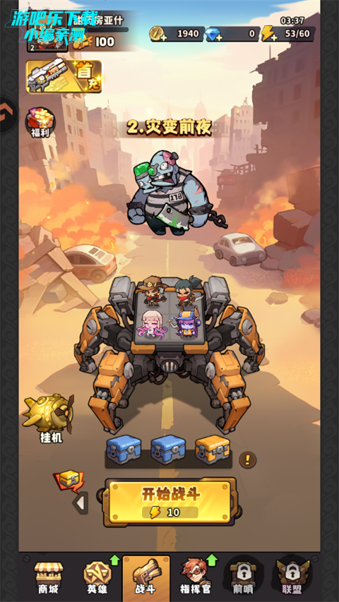 1、打开出征吧勇士手游,点击开始战斗,每次战斗需要消耗电量