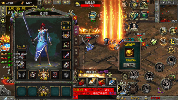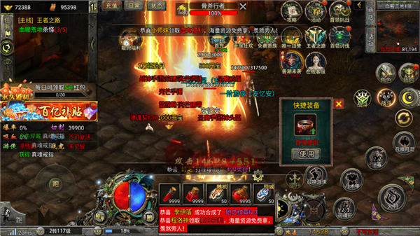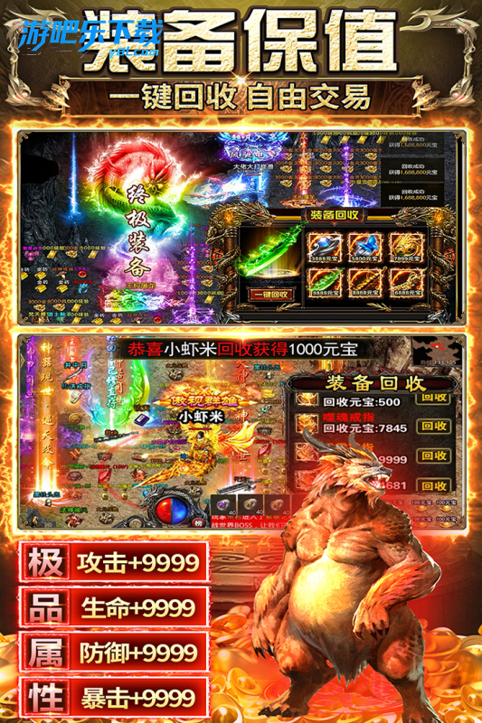 装备系统:强化、镶嵌符文、套装激活,装备全靠打,小怪也能爆极品,支持自由交易。
