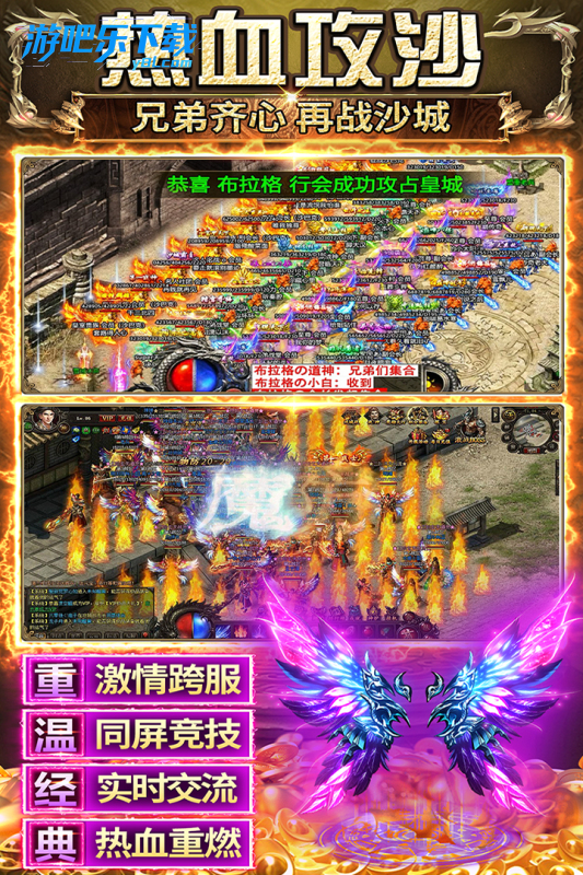 热血攻沙:行会集结,争夺沙巴克,奖励大量元宝与稀有道具。