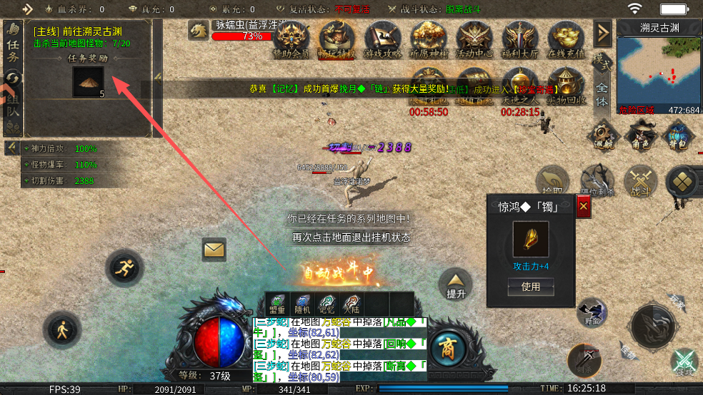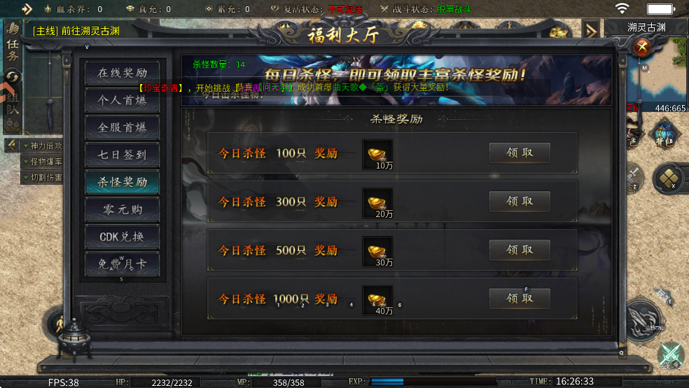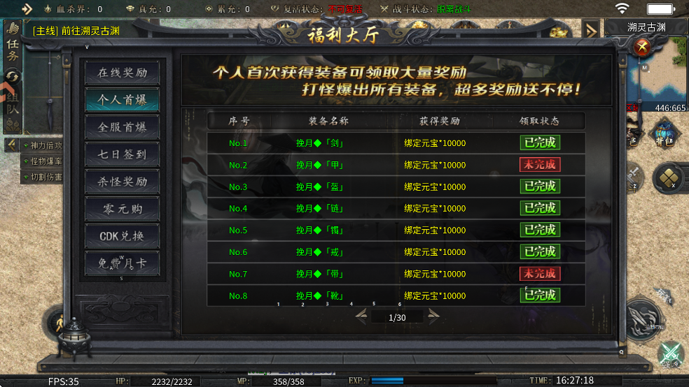 5、击杀BOSS首爆装备,还有额外元宝资源等待领取,体验从打怪到收益的成就感。