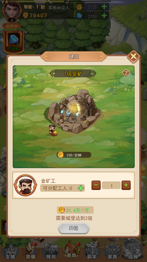 1、在游戏中,玩家需要首先升级城堡的等级,因为其余所有建筑设施的等级全部由城堡等级所限制。