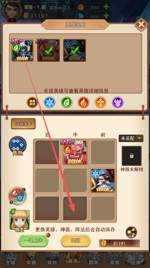 4、新获取的角色需要放入合适的位置,保证其能发挥全部的作用。