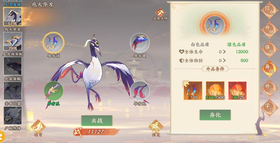 在游戏中所有山海异兽都可以自由进化,不同品质会有不同的战斗形态哦。通过升级和强化,可以增强山海异兽的属性,让它的能力更突出。在游戏中已经成功收服的山海异兽,只要培养后,无论是否上阵都可以提升总战力哦,所以大家放心培养吧!