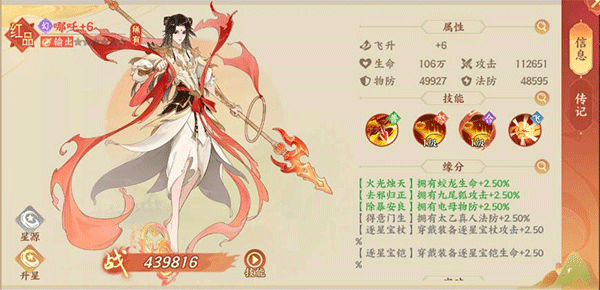 推荐理由:如果有仔细查看神灵种族的话,大家不难发现幻族基本都是以燃烧流为主,而哪吒就是燃烧队的主力输出,前排输出打击面广,还能给敌方减暴和加灼烧,搭配牛魔王一起上阵的话,可以保证给敌方阵容稳定叠上灼烧效果,让自己的燃烧队输出最大化。如果有氪金能力的话,还可以搞一个累充648,拿到燃烧队的人权输出-孙悟空,妥妥的燃烧队一哥,谁用谁知道,就是获取门槛比较高,大家还是理性消费比较好。