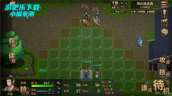 点击武将即可控制武将行军位置,可在界面查看武将信息以及技能介绍。每次行动只能选择一个操作(技能/攻击)然后结束回合!请根据实际情况进行战棋调整。