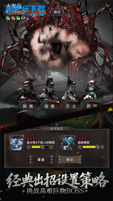 阵容 1(幻象 BOSS):蛊师 + 渗血 + 看破 + 阴阳,蛊师先发嘲讽 + 诱蛊,阴阳 1% 奶队友,其他全关。