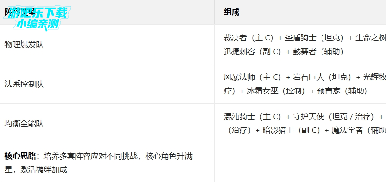 二、分阶段最佳阵容推荐(零氪 / 平民向)