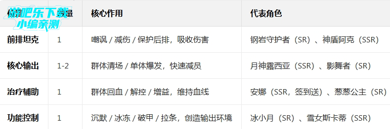 检查阵容:是否缺少控制 / 治疗 / 破甲角色