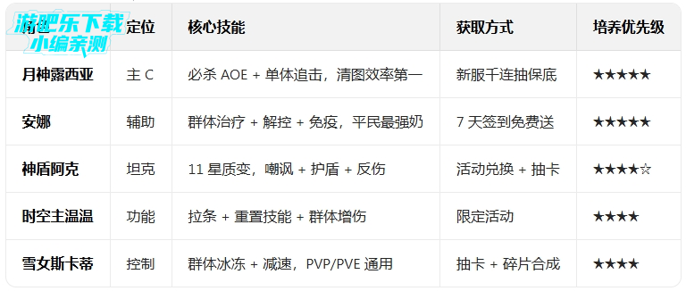 四、核心角色强度与培养优先级