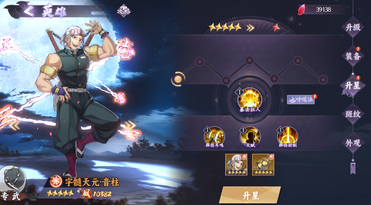 升星重要性:升星是提升角色实力的关键步骤,不仅能解锁更高级的技能,还能大幅提升属性与呼吸法等级。升星过程需消耗【本体卡牌】、【指定阵营卡牌】及一定数量的【突破石】。