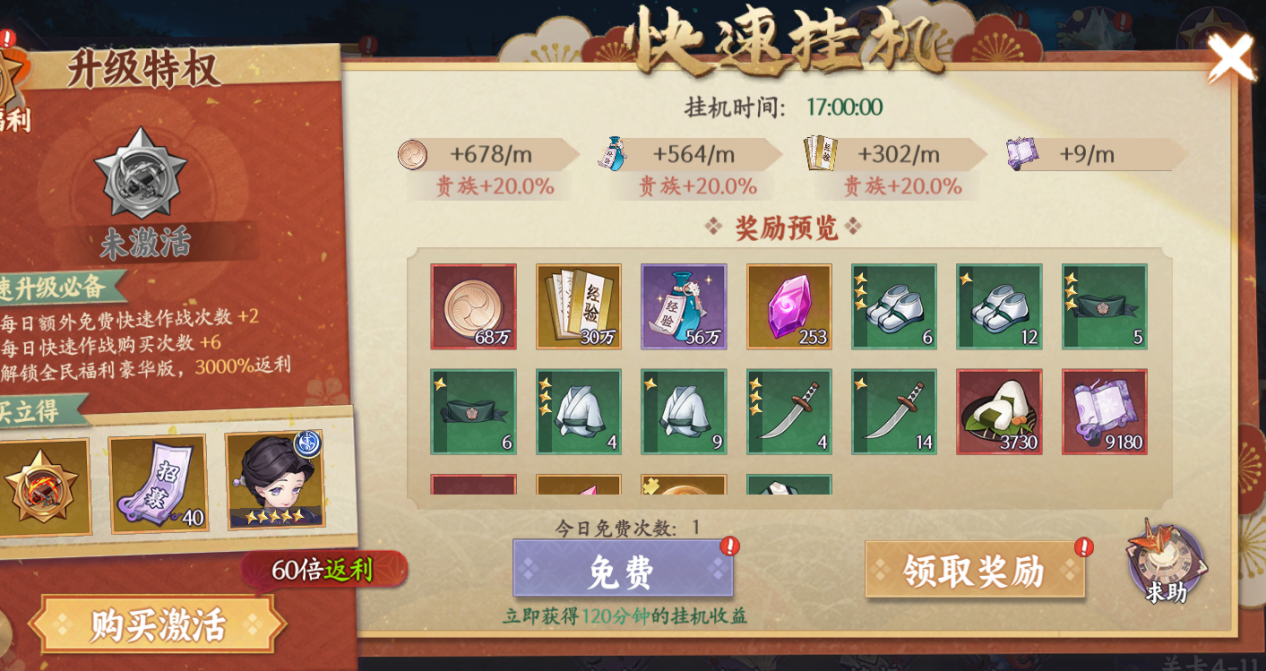 挂机奖励:利用游戏内置的挂机系统,轻松获得经验与金币。购买快速挂机特权可加速这一过程,贵族玩家还能享受额外加成。