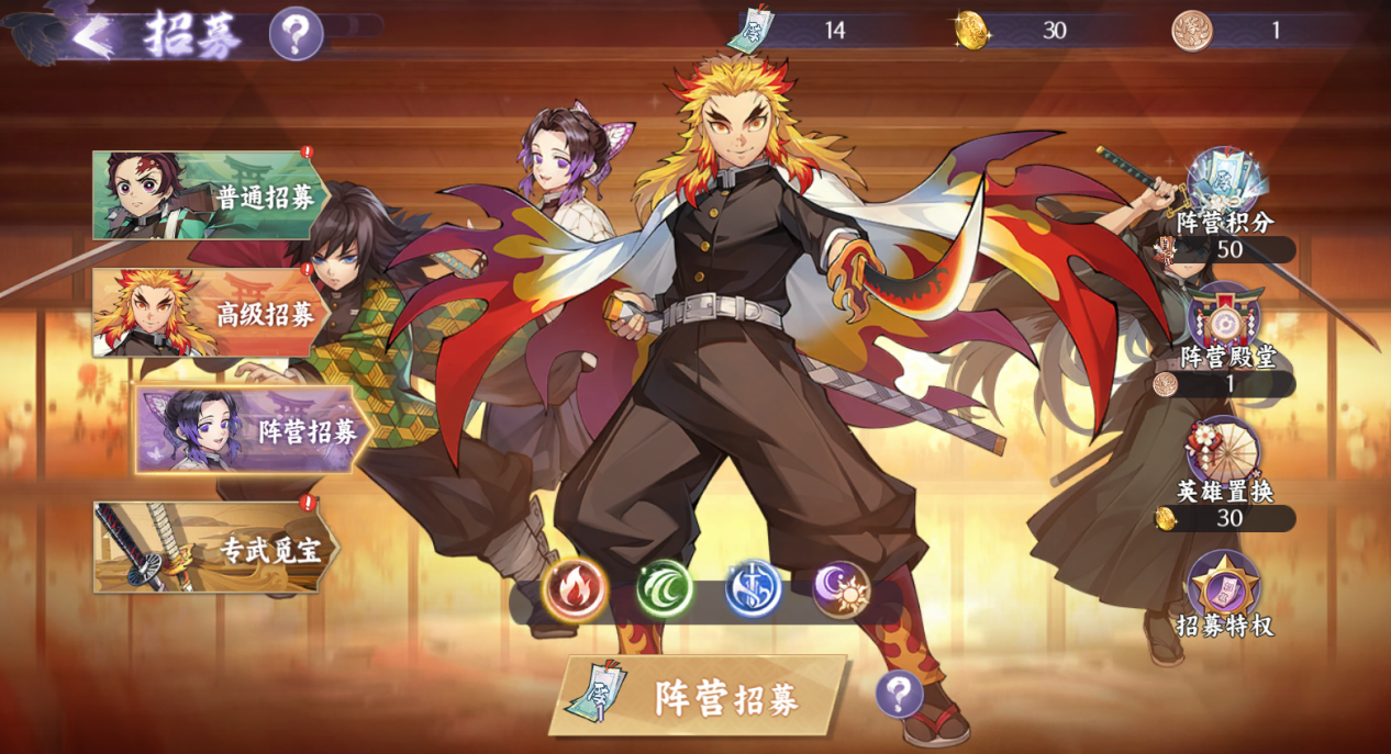 阵营招募会有阵营积分和阵营殿堂可以兑换英雄。进行一次阵营招募可以获得50阵营积分和1个阵营勋章。