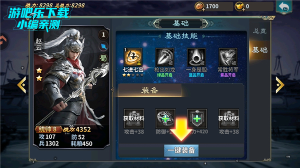 5、你可以查看你武将的信息并为他们提供更好的装备,可与解锁更多玩法。