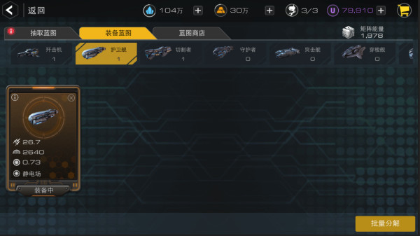 4、获取蓝图可以在科技中心消耗水晶或U币抽取蓝图,选择十连抽可以最大化的节约资源。因为每艘战舰只能装备一张蓝图,如果抽出的蓝图不满意,可以选择出售蓝图,换来的矩阵能量可以在蓝图商店中购买指定战舰指定颜色的蓝图。祝大家欧皇附体,单抽出奇迹。