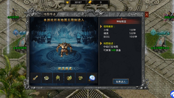 1、在游戏中我们可以进入到各种各样的场景地图中进行刷怪。