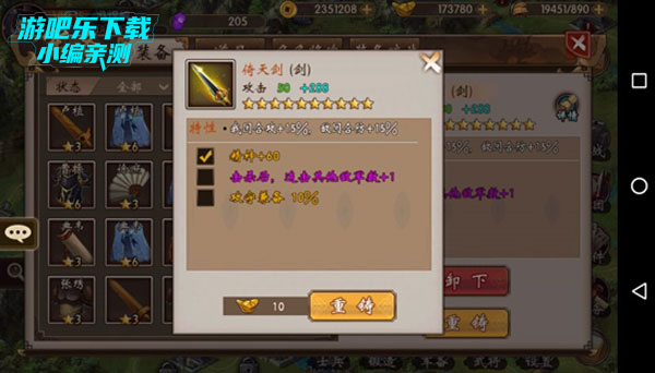 在战棋三国这款游戏中,我们所获得的兵器装备必须要靠不断的强化才能获得更强的属性值,进而激活特殊属性,那么下面就让我们来看一看如何对所拥有的兵器装备进行强化和重铸吧。