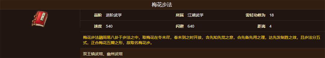 轻功选择:梅花步,能增加闪避和移动速度,方便走位和支援队友,是实用性强的主流选择。