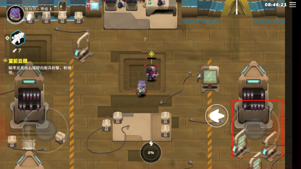5、当我们拾取武器之后,游戏界面右侧的圆盘即可派上用场了,点击可以发射子弹攻击,滑动可以调整攻击方向;