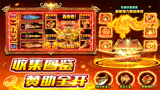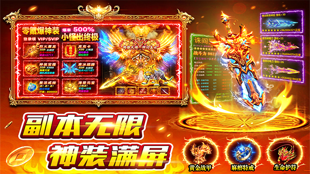 【多元玩法,热血无限】挖矿产灵符、职业试炼解锁神技、福利BOSS无限打!屠龙战场、神剑塔、龙渊会武、跨服推塔……副本无限制畅刷,神装爆不停!【召集兄弟,热血攻沙】群雄乱斗,万人同屏!兄弟并肩再战沙场,一人得宝,全员享福!血战到底,重燃青春热血,誓死捍卫行会荣光!