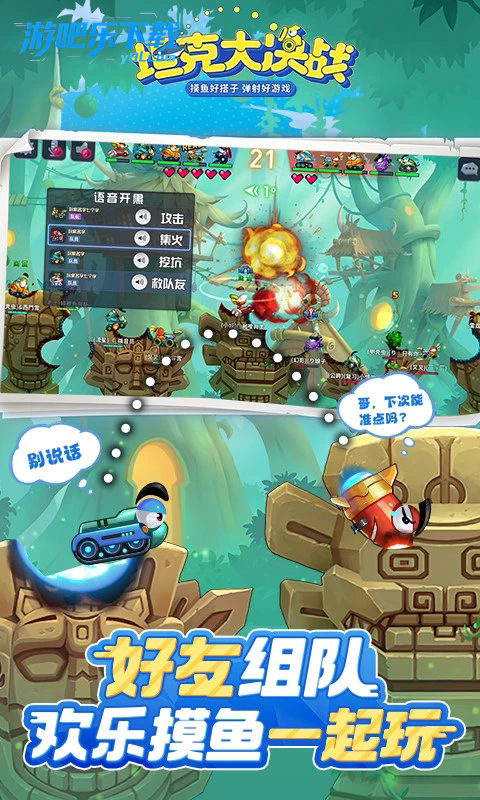 坦克大决战微信登录版是一款疯狂坦克正版授权的休闲弹射竞技手游,核心是回合制抛物线射击 + 团队协作,单局 3-5 分钟,适配碎片化时间,兼具休闲与竞技体验。感兴趣的小伙伴可以来试试!