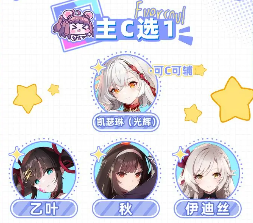 凯瑟琳(光辉)变身后输出很高,但她需要暖机时间,因此在她变身前由梅菲输出,并由贝莱德、克莱儿、智河的双治疗一坦克的组合,来确保队伍在凯瑟琳(光辉)暖机结束前的存活,等她完成变身后就能接管战场,配合上梅菲的输出和控制,可扫平 PVE 关卡里的一切敌人,并且这套阵容在 PVP 里也有极高的强度。