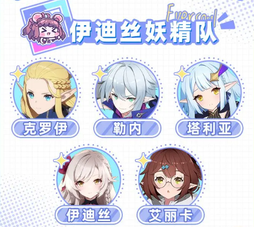 艾丽卡和塔利亚除了能为队伍提供所需的治疗能力外,她们两人还能为伊迪丝施加各类增益,让伊迪丝能根据自身所获得的增益强化技能效果打出更高的输出。克罗伊和勒内则是队伍的前排,并且勒内也有着不错的输出能力,可协助伊迪丝快速清理掉敌人。本阵容能享受同一类型 5 位的加成,上阵时攻击、体力属性都能提升 25%。