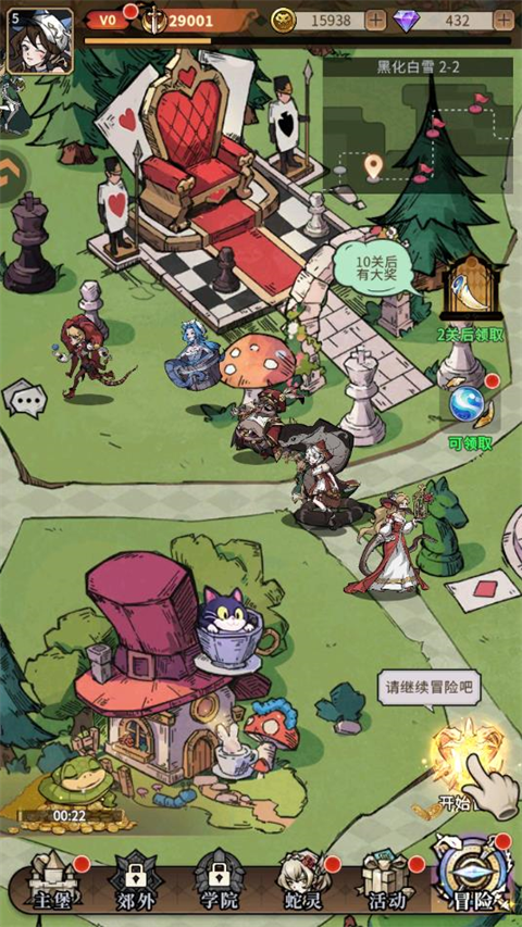 优先养成小小白雪,爆发输出,技能击杀追击,并提升稳定给敌方附加[寒冷]状态的能力。海贼黛丝切后排,压低血线,为小小白雪锁定低血目标,同时提供不俗的爆发能力。而小鹿薇妮提供群体控制,辅助小小白雪追加输出。小小红帽利用击杀追击机制进行补刀。三小恶魔作为前排抗伤,且有复活能力。柴郡猫为己方提供攻暴加成和治疗。