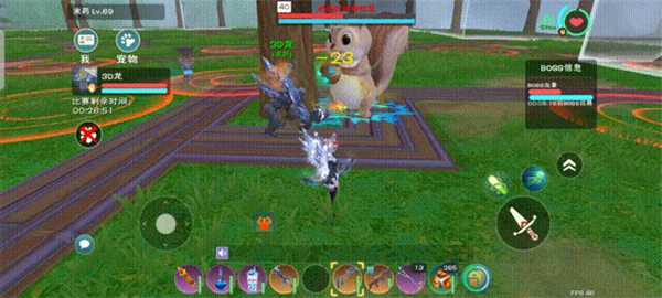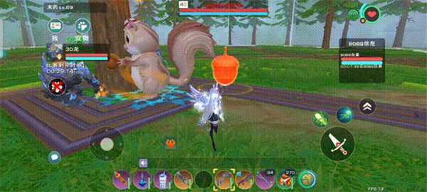 松鼠会不定时召唤炸弹,详细表现为地上有双层内外扩大的红/橙色圆圈。见到时仔细观察周围,确定自己要闪避的位置处没有炸弹。(松鼠被自己的炸弹炸到会掉血并眩晕,但是在巨人嘲讽的方法下并不值得特意追求此效果)