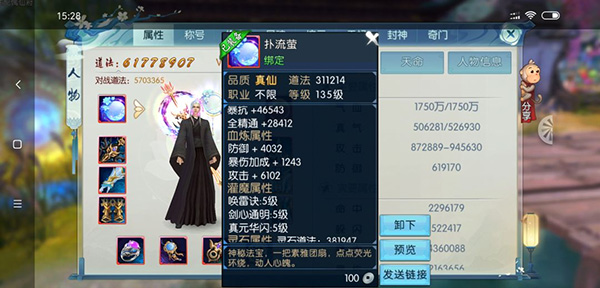 V18大佬肯定优先带诛仙剑,其次如果被过分针对,可以带云中戏增强生存能力。一般情况下打输出天琊就行了,如果要集火的话选择紫芒,另外分享一个黑科技法宝扑流萤: