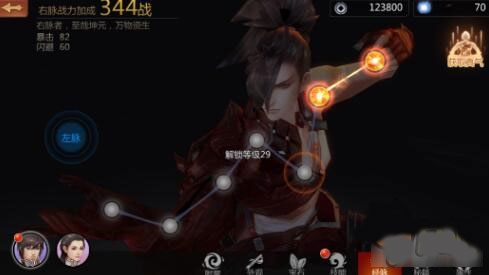 点击【角色】→【经脉】→选择【左脉】或者【右脉】→选择需要打通的穴位→在穴位内打通气门会获得战力和属性的加成!