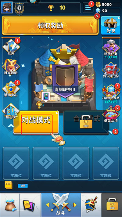 1、进入游戏,点击对战模式;