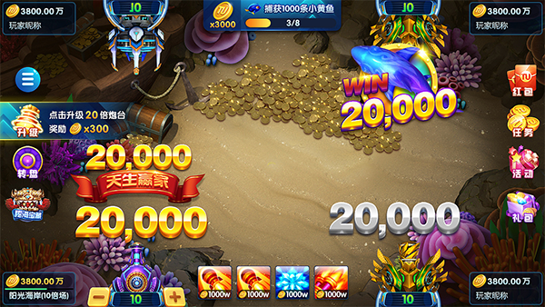 1、炮塔升级:通过消耗金币来升级炮塔是提高捕获鱼的概率的有效方法。随着炮塔等级的提升,发射的炮弹威力增强,可以更轻松地捕获大型鱼类,获得更高的奖励。玩家应及时升级炮塔,增加捕鱼的成功率。