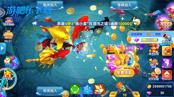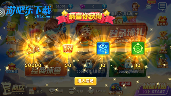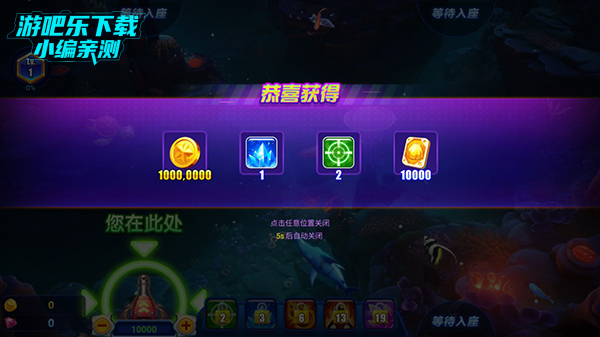 1、玩家进入游戏就可以领取一千万金币和道具奖励,让玩家尽情捕鱼。