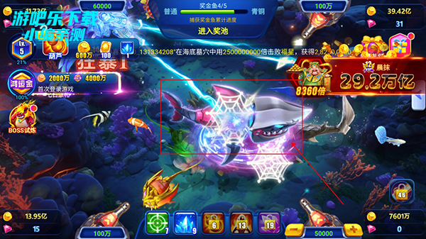 4、在渔场内还有着非常多的BOSS鱼类可以捕捉,获得大量金币、钻石。