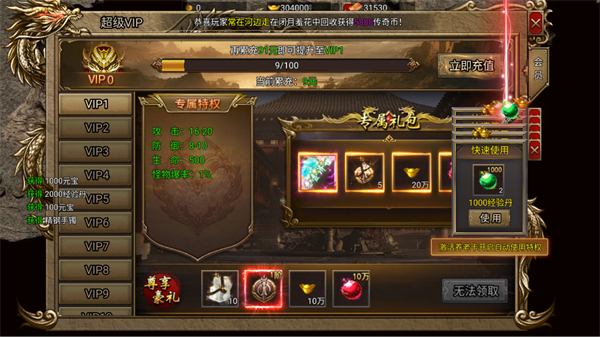 利用免费赠送的VIP特权,解锁自动回收、自动熔炼等功能,显著提高刷怪效率。同时,领取VIP专属礼包,提升攻击与防御属性,增强战力。