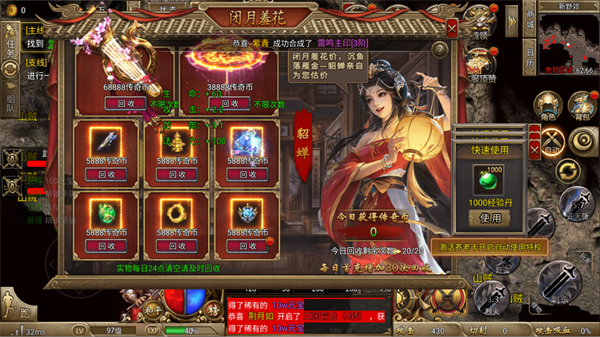 参与“闭月羞花”等回收活动,将多余的装备兑换为传奇币,用于购买升级材料或提升行会贡献,加速养成进程。