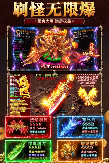 1、击杀所有BOSS都会掉落神装,击杀对应等级BOSS掉落对应等级神装