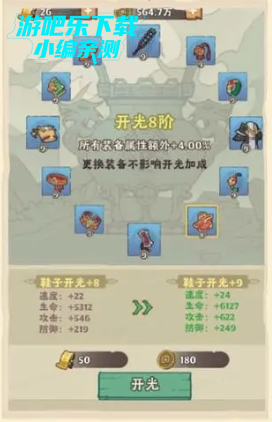 消耗开光符和升阶符精炼装备,提升所有装备基础属性。装备精炼阶级达到指定条件即可激活合鸣,带来道行的提升。
