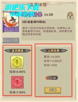 法宝每升一级可以提升道行,解锁组合内的法宝激活羁绊属性,与灵将的羁绊不同,法宝的共鸣可以伴随着法宝的等级来提升共鸣的属性每次升级也可以提升道行。