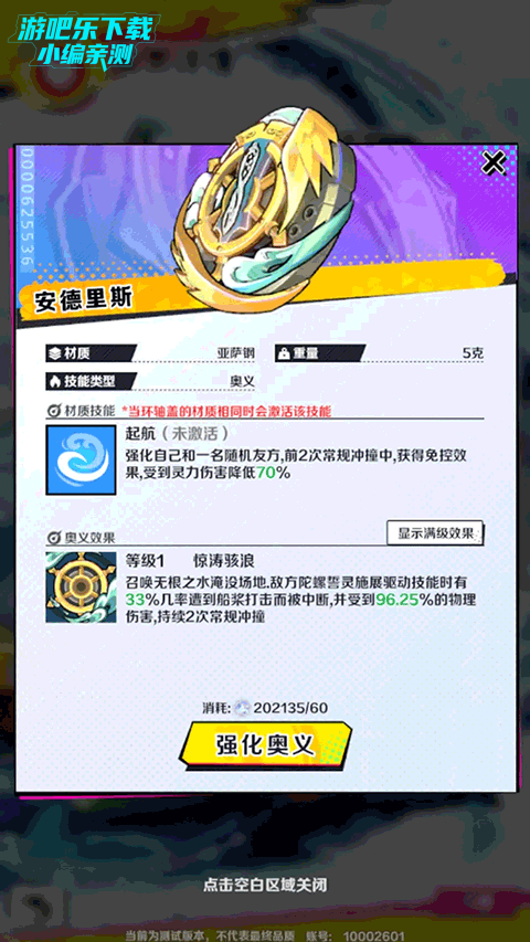 在游戏内的“强化界面”,只需点击配件部位,即可直达装配区。在这里,你可以随心所欲地挑选和搭配各种战术盘、重力环与驱动轴,创造出独一无二的陀螺战士。