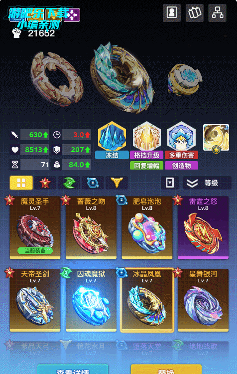 防御型:以高防御与抗伤能力见长,能有效抵御敌方冲击,保护自身陀螺持续在场,如 “山岩巨像”“囚魂魔狱”。