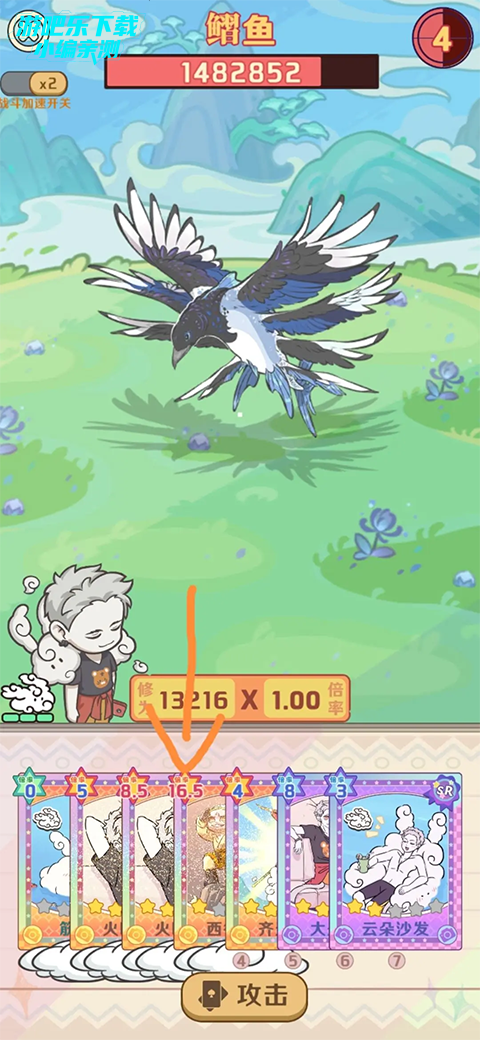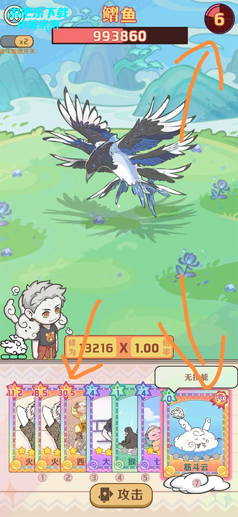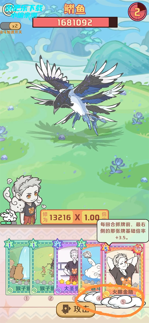 4、注意最后一回合,把筋斗云拖到最后,让所有牌生效,打出攒的倍率。