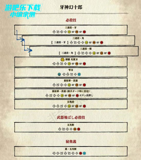丢掉武器:↓+中斩+强斩+脚踢