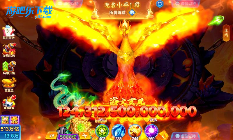 炮台倍率 100-10 万倍,倍率越高消耗金币越多,捕获收益也越高。