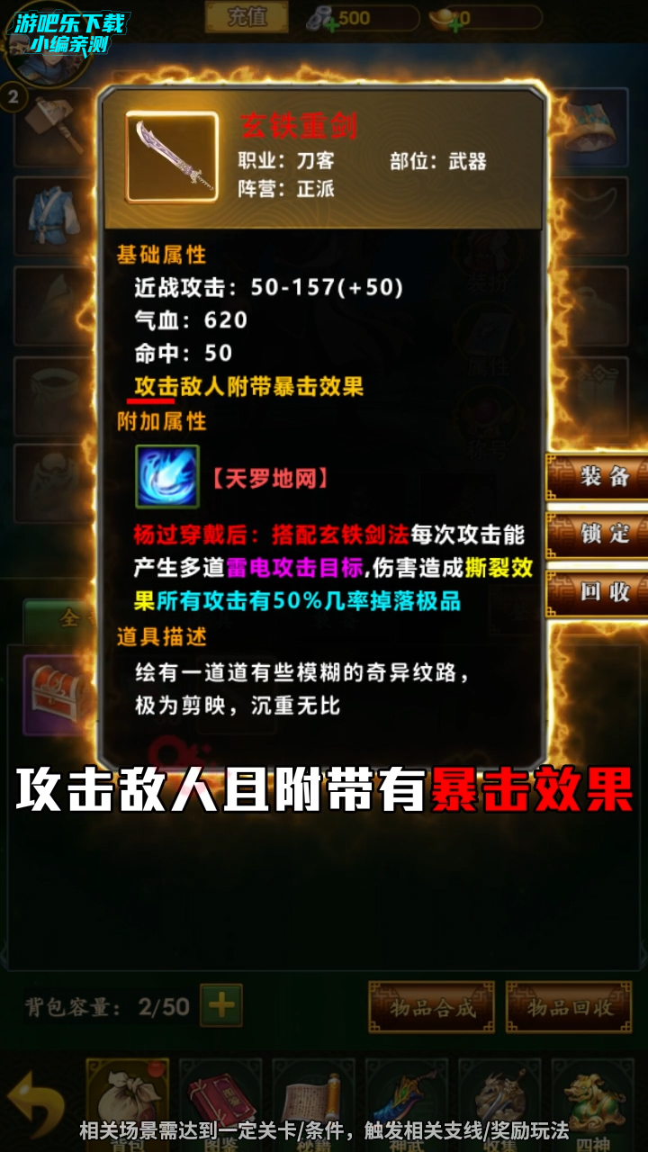 (3)装备类:稀有装备需要通过击杀高级品质的怪物与BOSS掉落