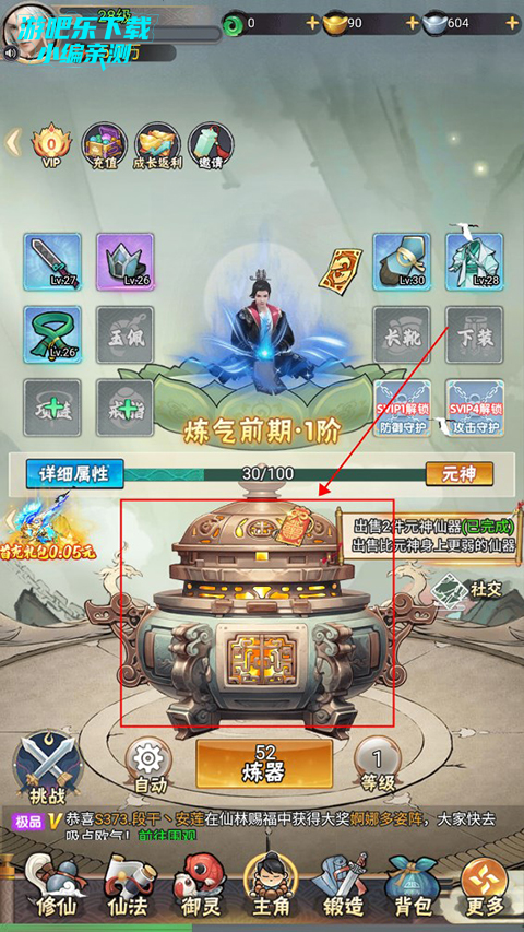 4、玩家出售装备可以获得元宝,元宝可以用来提升炼器炉等级,增加高阶装备开出的概率。