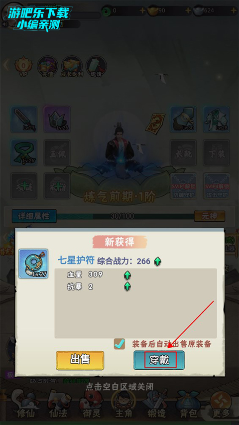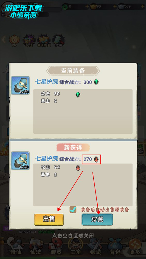 3、锻造出相同类型的装备可以根据战力高低来选择出售或穿戴。